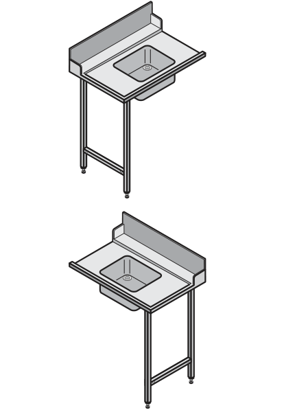 Das optimale Zubehör für Ihre Spülmaschine. Das Standard-Tischprogramm besitzt ein tiefgezogenes Tischprofil mit einer Tiefe von max. 25 mm und ist in den Standard-Längen 700, 1200 und 1700 mm verfügbar. Optional ist auch ein 200 mm hohes Spritzblech erhältlich.